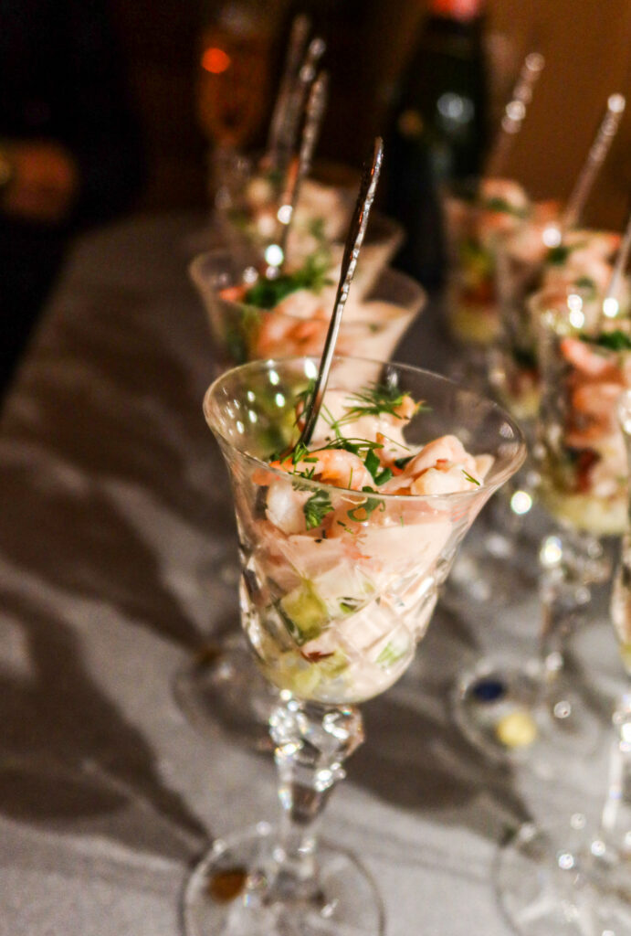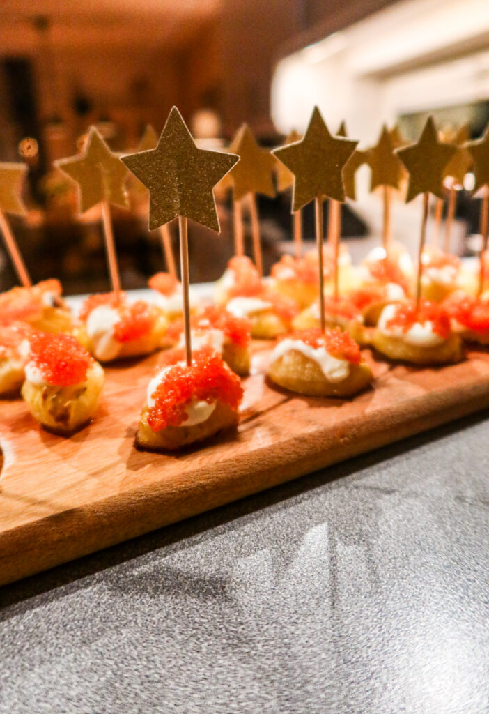 Lite härligt gotta till bubblet! Ska tigga åt mig receptet sen så jag kan tipsa dig också. Det var en räkchevice men en krämig sort. Sedan var det potatis med gräddfil och löjrom. Mums!