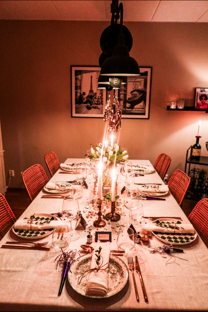 Hemma hos Mange & Maria väntade ett vackert dukat bord. Älskar porslinet. En bladning av ”Gröna Anna” och ”Berså”. Så fint verkligen.
