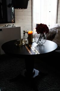 Lovade ju visa er vårt nya vardagsrumsbord. Det är ett gammalt pelarbord som går att snurra så den blir högre och lägre. Jag gillar att det är lite högre för då kan man sitta och äta vid TV:n också…. hehe. Ja, vi är specialister på att sitta och äta vid TV:n. Jag tycker det är så himla mysigt att göra det. Helst när man äter lunch ensam, då har man sällskap av någon.