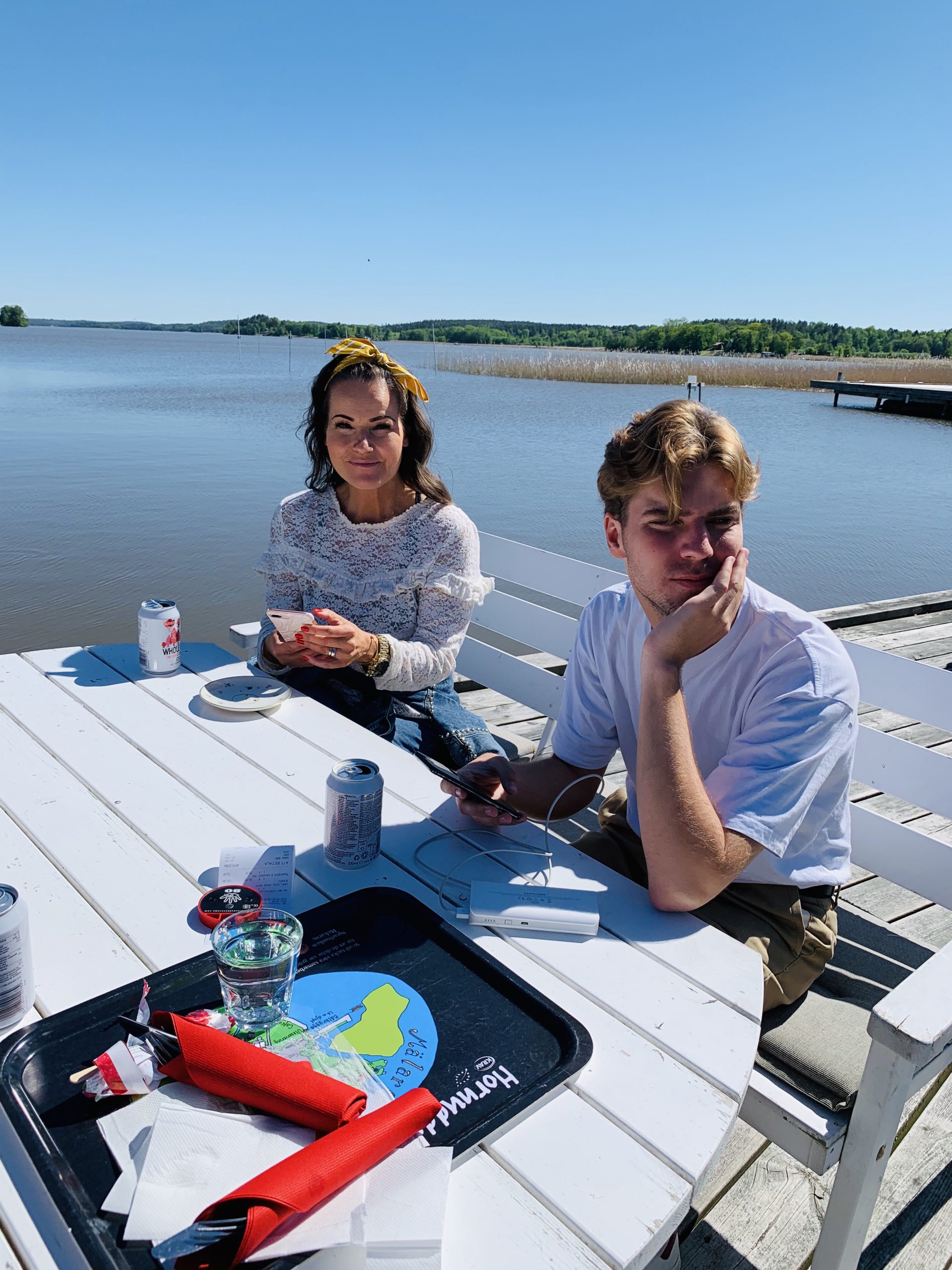 Efteråt fikade vi på Hornudden. Mysigaste stället i Norra Europa typ. Där vill man sitta hela dagen och bara njuta. Inte blev det sämre av att jag träffade en av mina ”Hela Sverige Bakar” kollegor, inte sett sen vi spelade in programmet för 8 år sen. Så kul! Mamma och ligan satt vid ett annat bord, därför syns dom inte i bild.