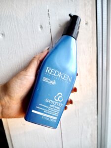 Utan denna behandling varje gång jag tvättat håret så hade jag nog inte haft nåt hår kvar. Haha…. Detta är en anti-snap från Redken. Alltså en leave-in produkt som man har i håret när det är blött. Detta har lagat och hållit ihop håret på ett fantastiskt sätt. Det liksom sluter hårstrået efter en tvätt och gör så borsten bara flyter igenom det. Tar bort allt frissigt och boostar. Världens bästa produkt!
