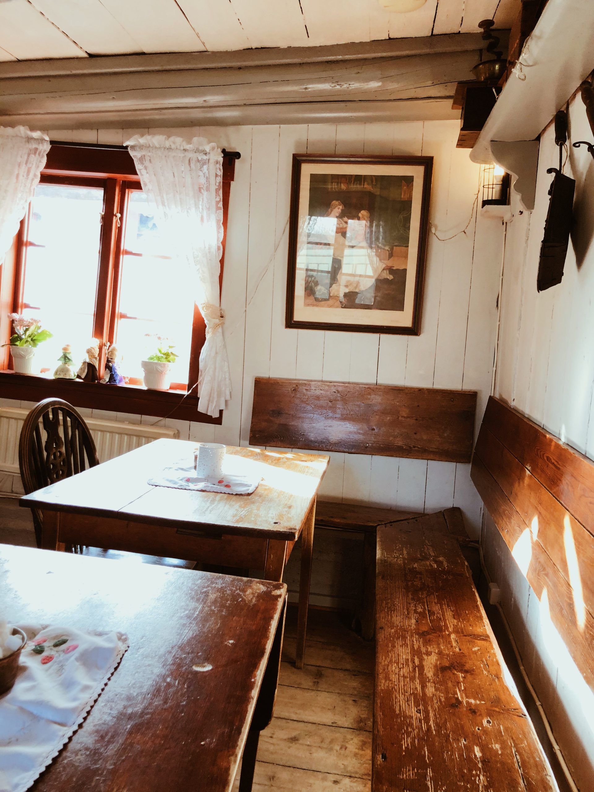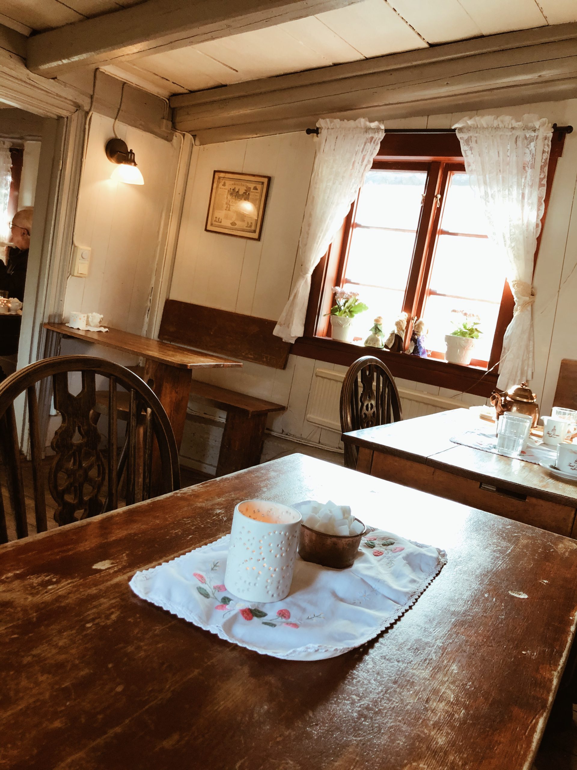 Vi startade med ett besök på underbara Tant Bruns kaffestuga. Det här är en byggnad från 1600 talet och det känns, så mysigt!