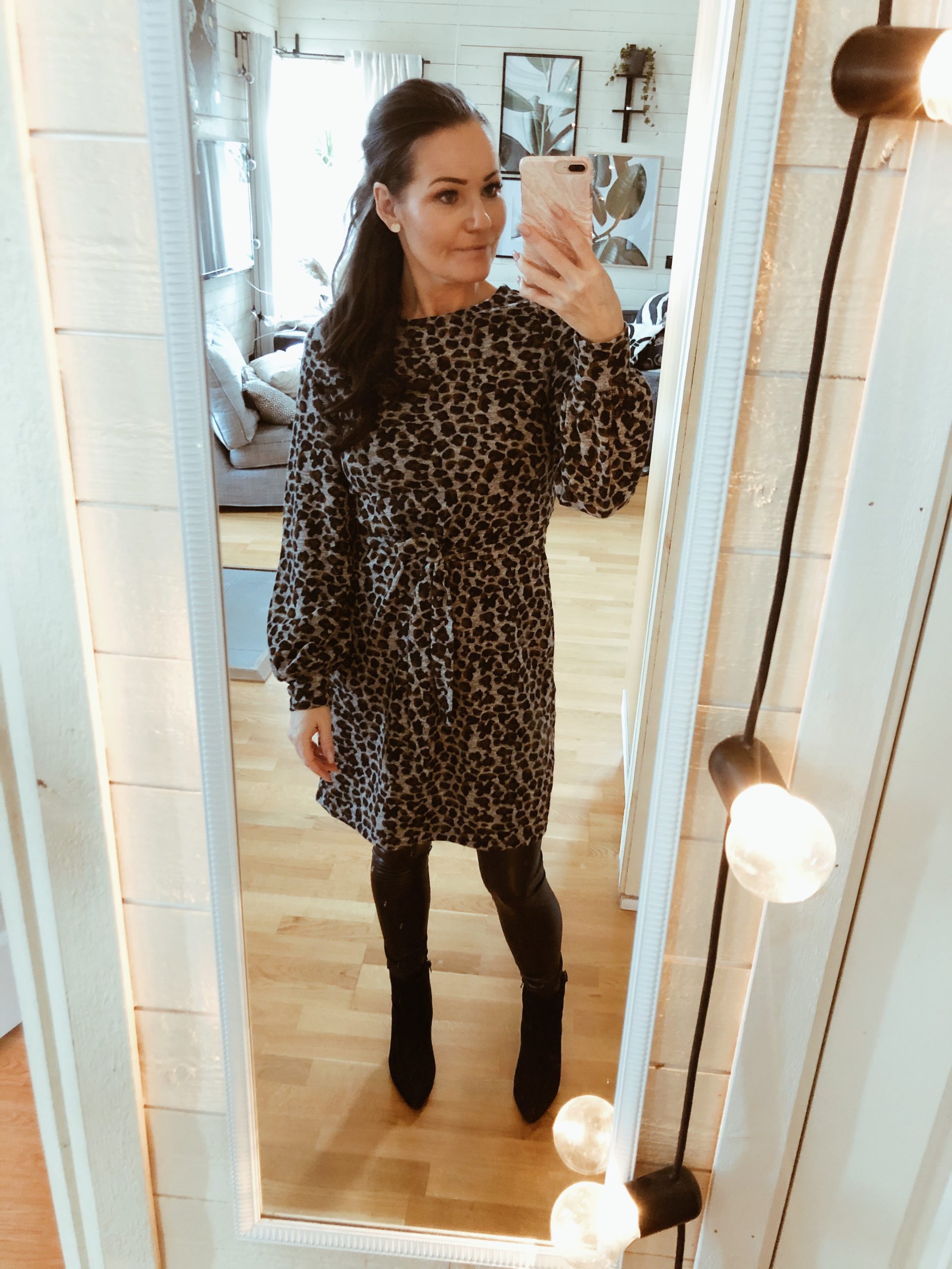 Idag hade jag på mig nya klänning/tunika. Åh vad jag älskar den. Så mjuk och skön och så vet ni ju redan hur mycket jag älskar leo. Skitsnygg till fakeskinntightsen (< länk) från Love Forever.
