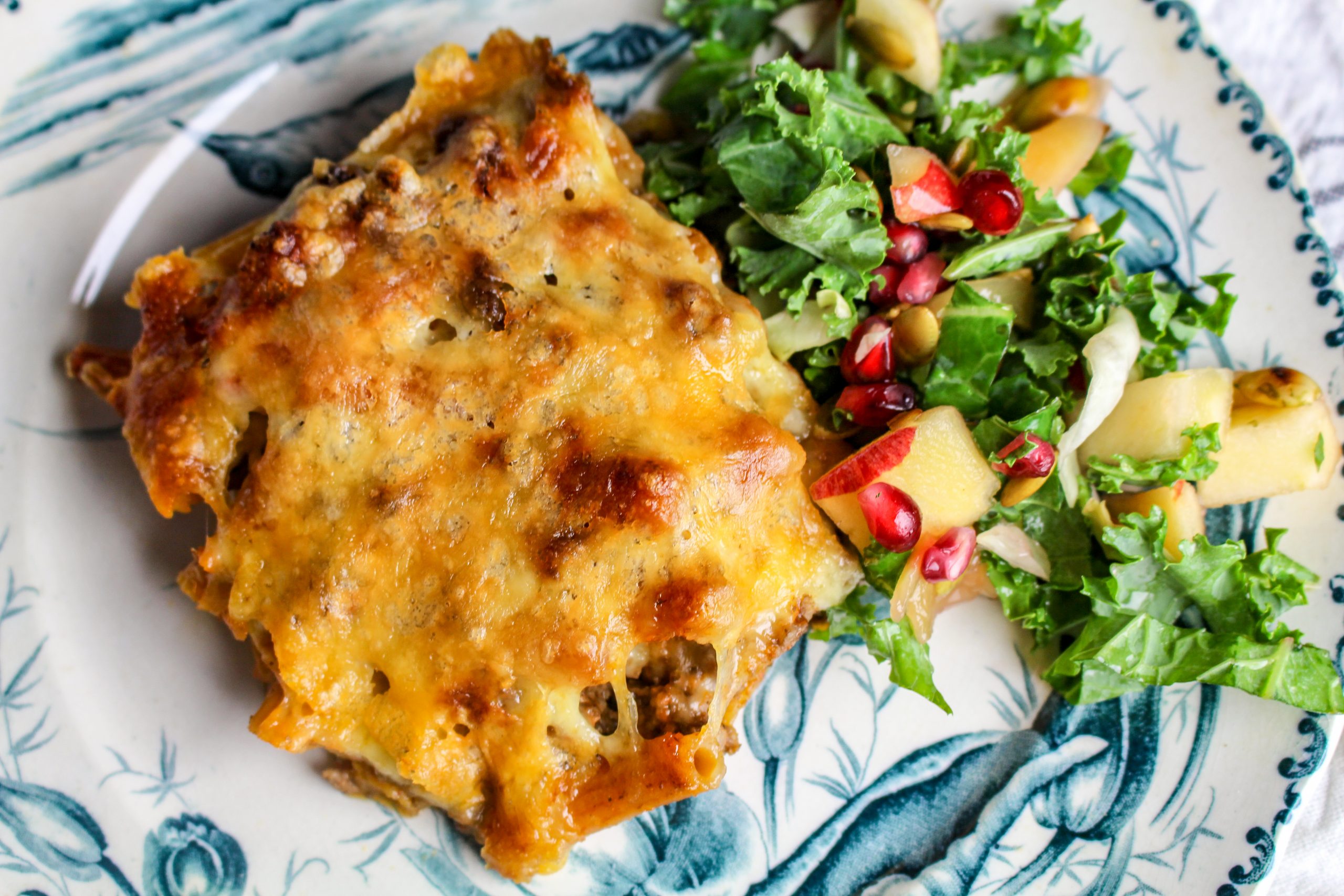 6) Toppa med osten. Skjuts in i ugnen på 225 grader i ca 15-20 min, osten ska få fin färg.