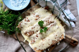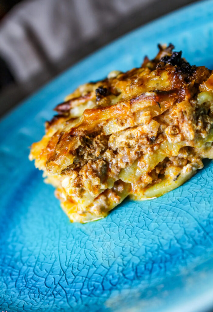 Denna köttfärslåda är så god hörni! Detta är verkligen vardagslyx i en liten form, så oerhört smarrigt att avnjuta med en grönsallad med vitlökssås – testa min vitlökssås, den är så god! För att få denna att gå riktigt snabbt, förkoka potatisen.