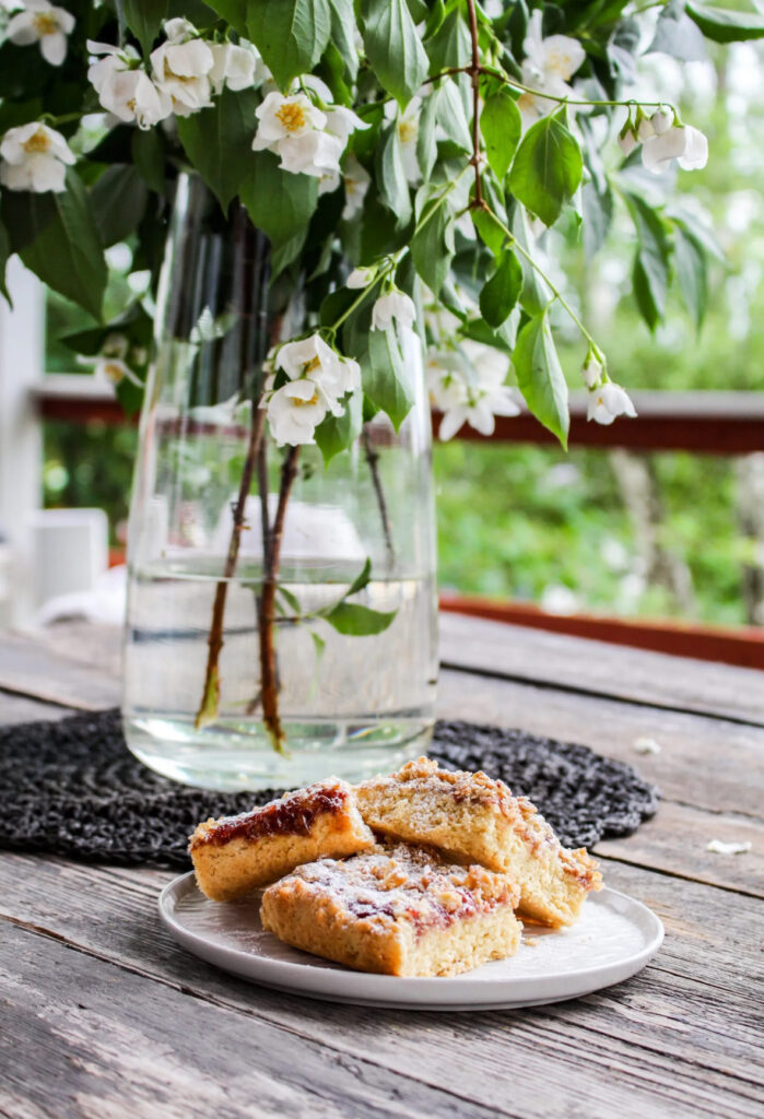 Hiiiiiimmelskt goda jordgubbsrutor. Dessa är sådär frasiga uppepå och så bara smälter dom i munnen. Detta måste du testa. Fixa gärna lite vaniljvisp till, ha en hemmagjord som blir så fluffig och god, recept HÄR.