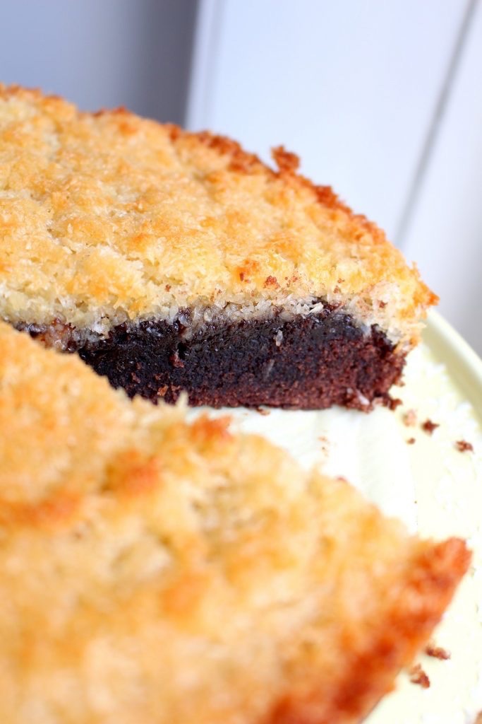 En riktig favorit till helgen! En saftig kladdkaka toppad med ett krispigt kokostoscatäcke – magiskt god.