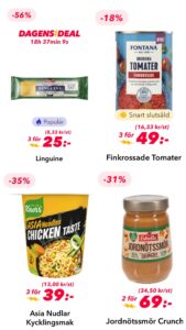Glöm inte: hos Matsmart hittar du massor av prisvärda skafferivaror. Just nu riktigt bra priser på massor av varor på hela sidan. Med koden Ninnis15 får du dessutom 15% rabatt på ett köp när du handlar för 499 kr eller mer.