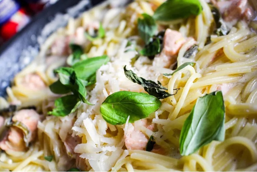 Åh den här laxpastan älskar jag. Den är härligt lite samtlig av parmesanen och lite syrligt från citronen. Riktigt mums!