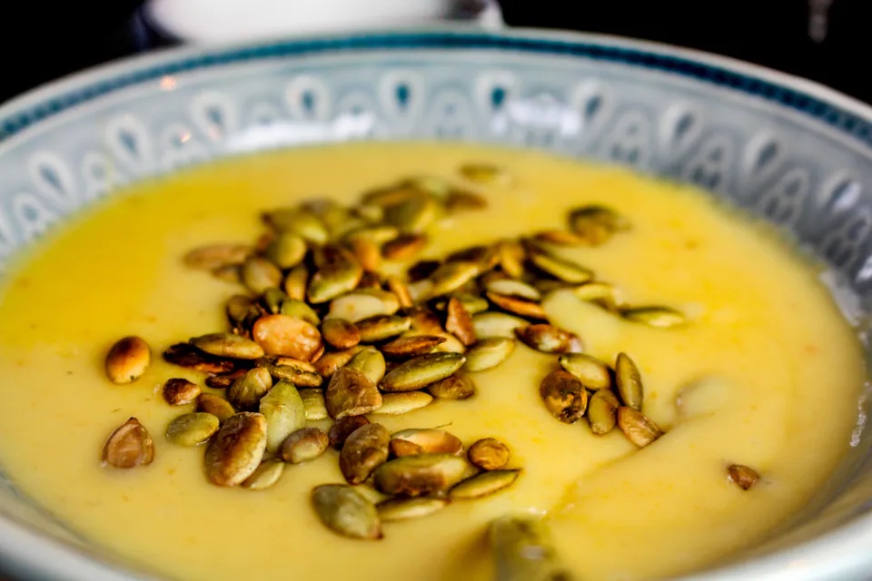TORSDAG: Krämig rotfruktsoppa med saltrostade pumpafrön