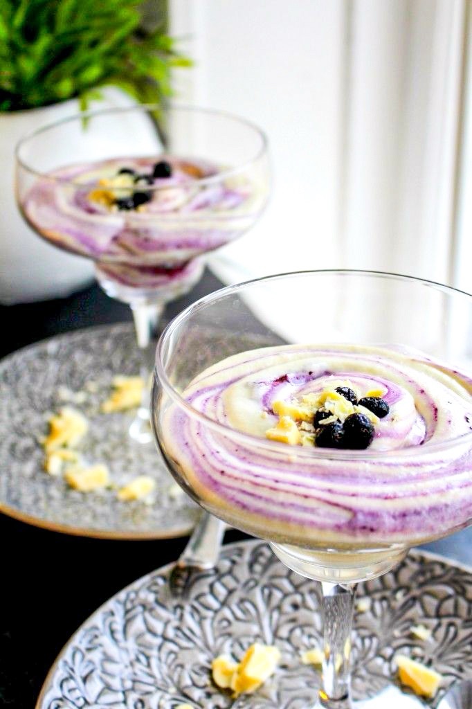 🍨 Efterrätt – Vit chokladmousse med blåbärsswirl