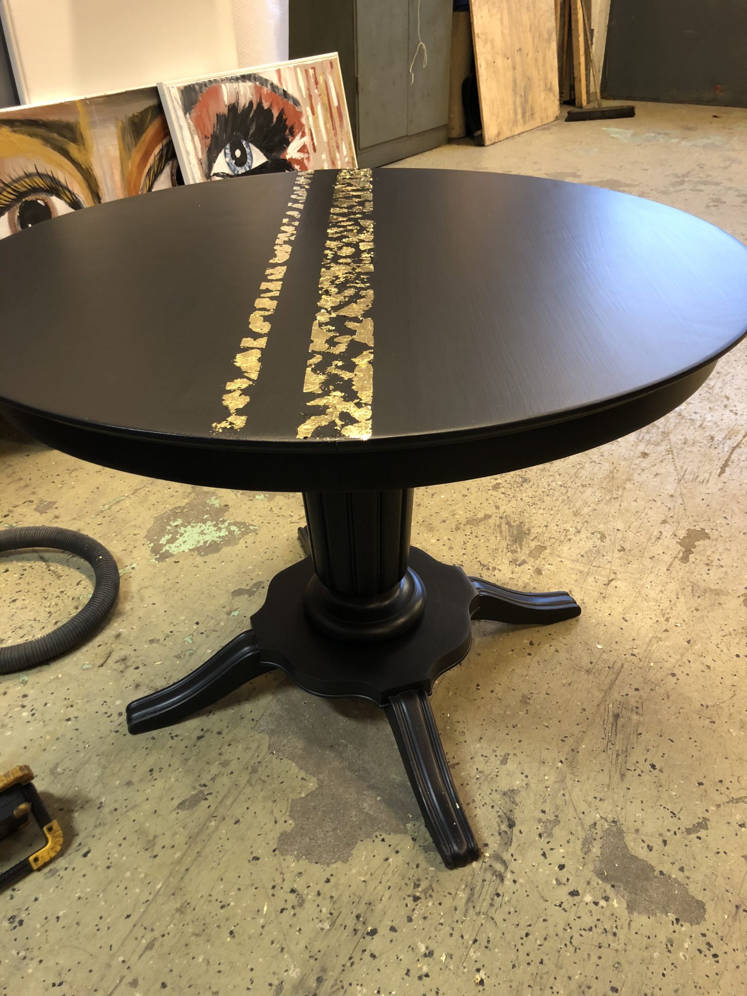 Galet att de för bara några dagar sedan stod på pappas verkstadsgolv. 🙂 Det runda bordet ska vi ställa i vårt eget vardagsrum, det värsta är nog att jag typ är kär i möblerna själv och skulle helst vilja ha allt hemma.