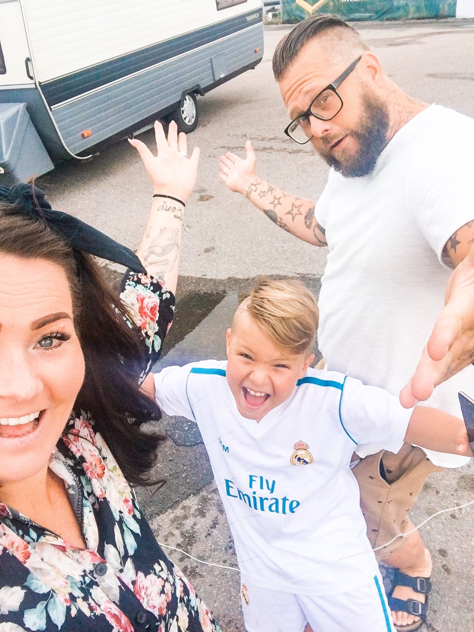 Ett laddat gäng på väg för några timmar sedan. Haha…. Snart åker vi förbi Skara. Just nu regnar det här på vägarna. Annars har det varit fint väder hela vägen.