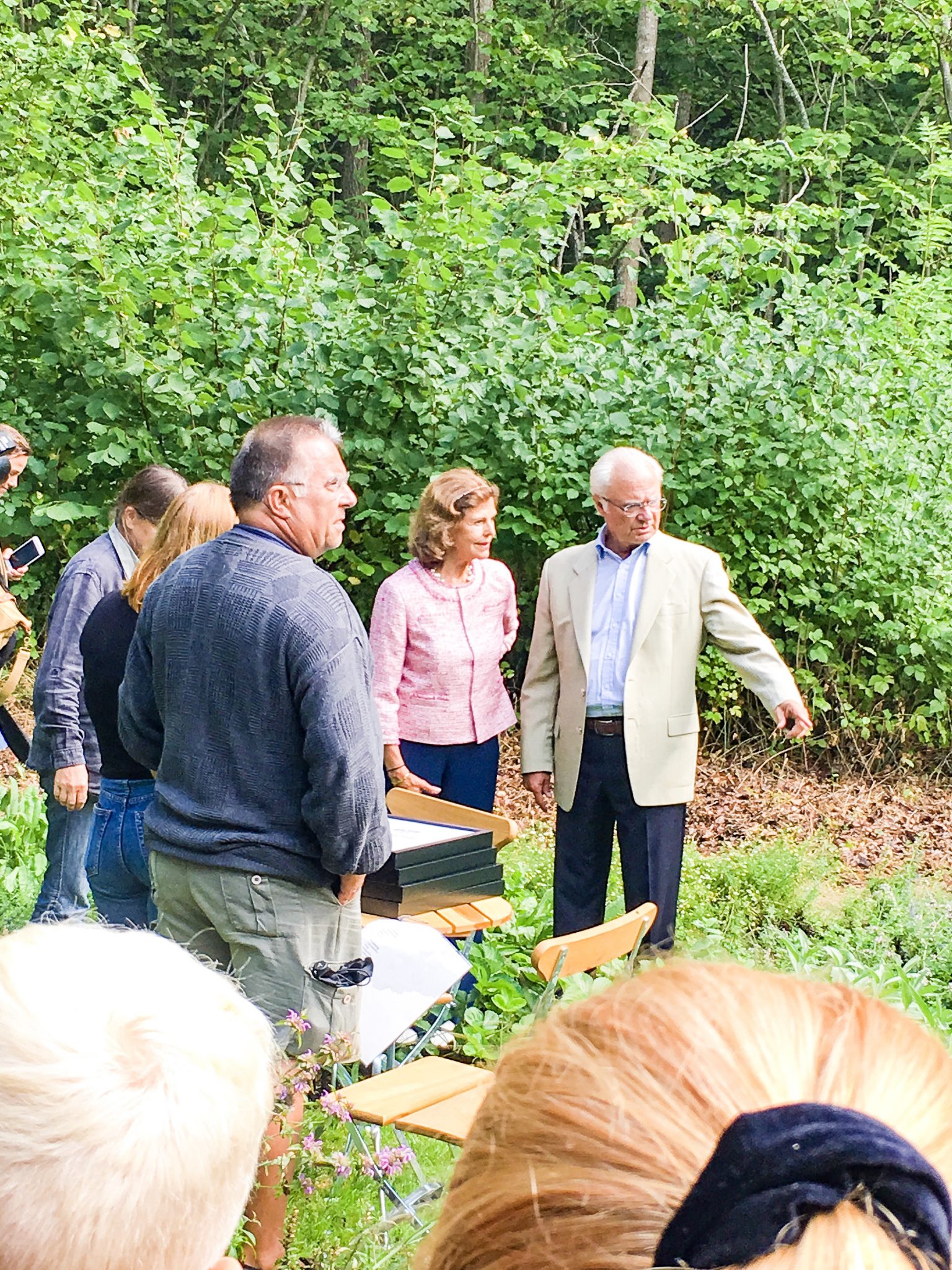 Här stod dom på scenen och dela ut priset. De hade såklart livvakter med och de hade full koll. Kändes så fantastiskt att vi var ett gäng som stod där i deras fantastiska trädgård och upplevde allt detta.