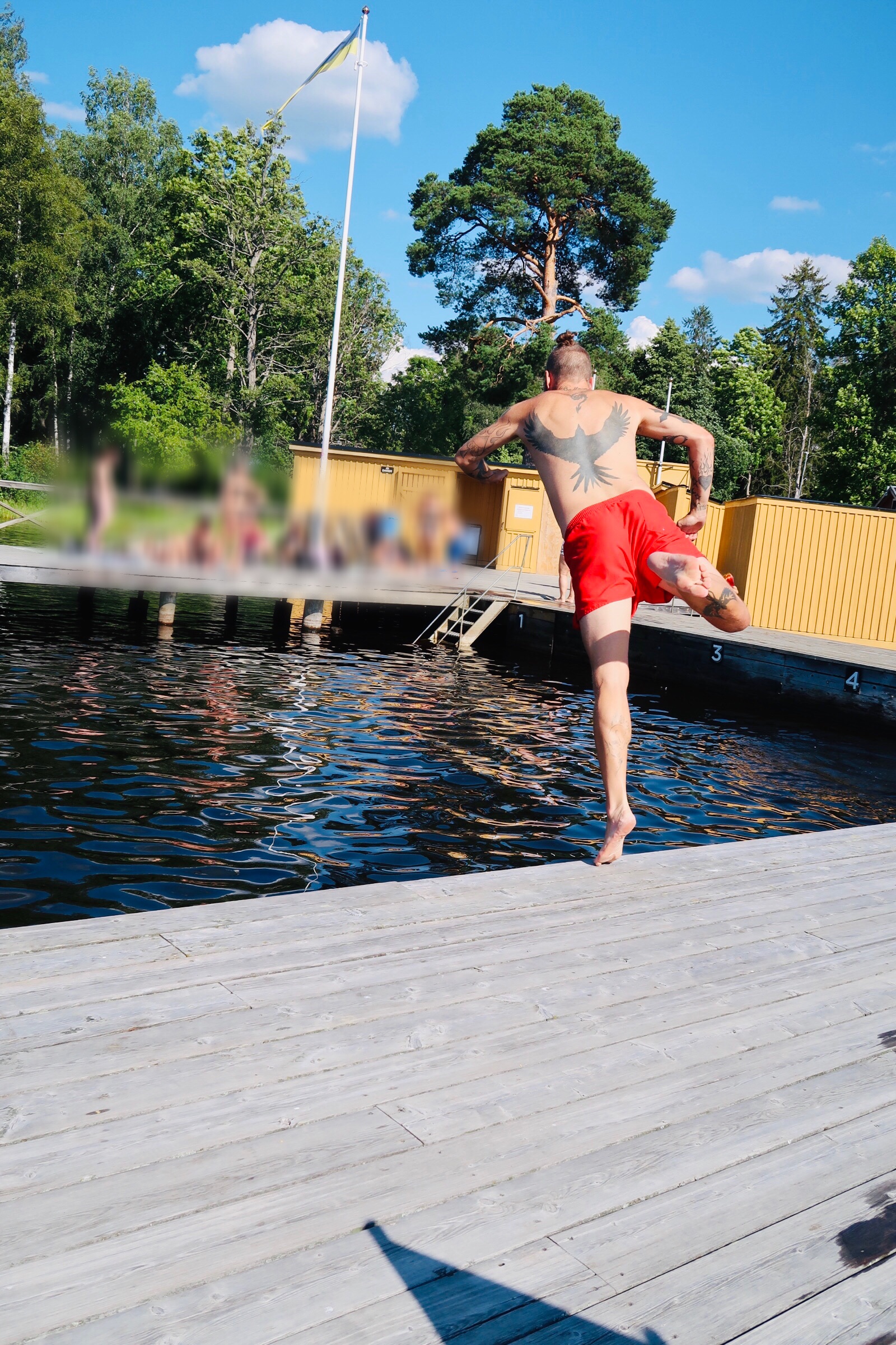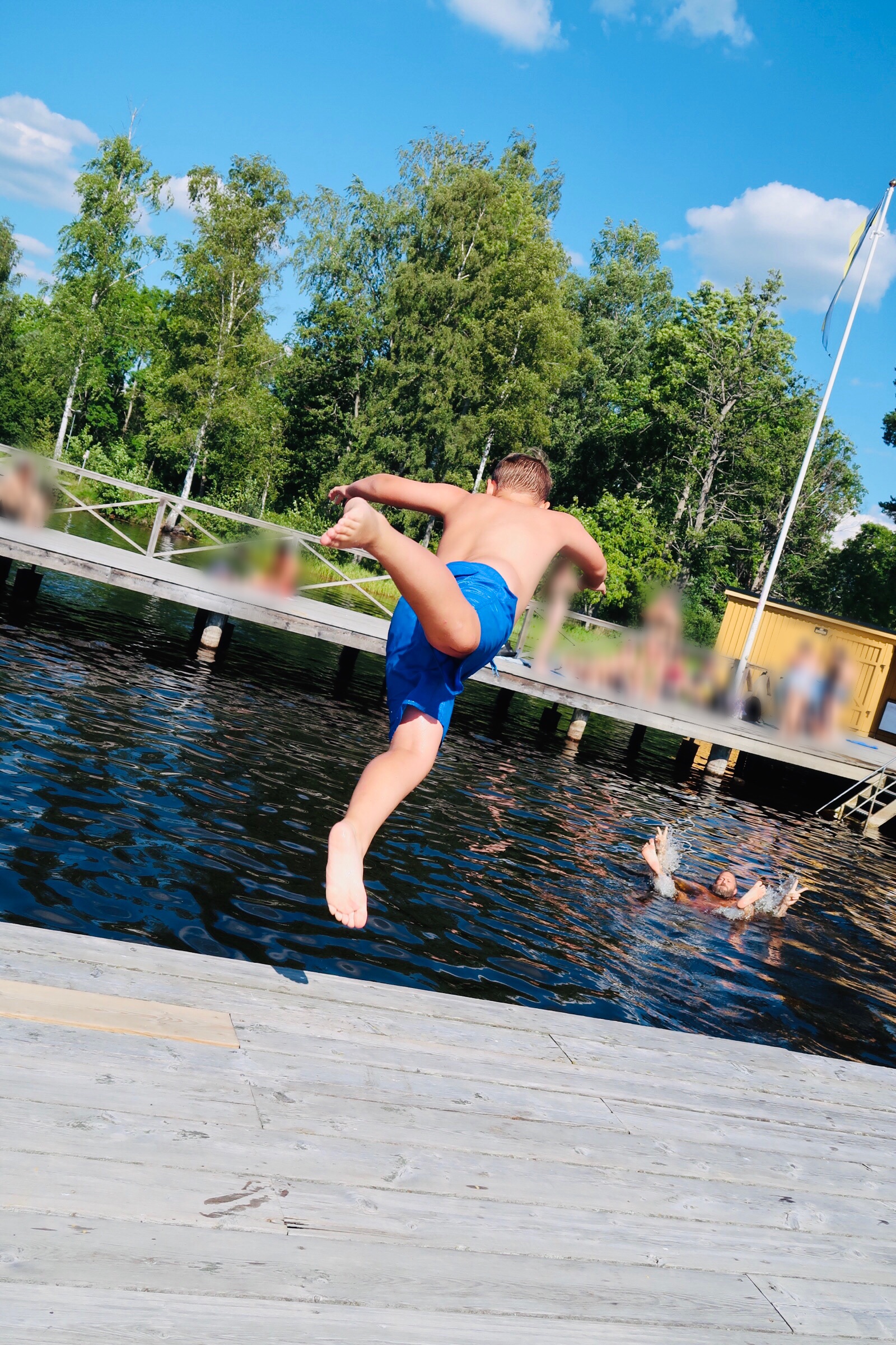 Vi var på Måns Ols igen, en av våra favoriter. Käkade lunch på värdshuset och så hängde Milo i hopptornet och hade fullt upp där. Hopptornet år lite extra kul då det har 7 meters torn. Lite högre än det vi är vana vid.