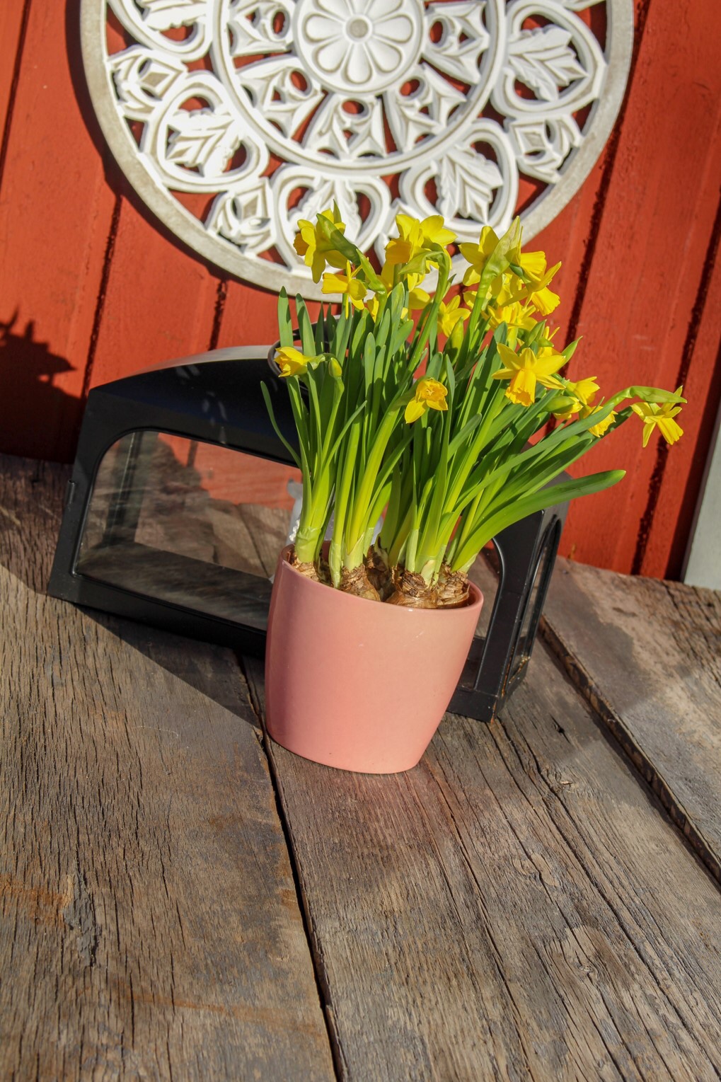 Fixade med lite penséer och påskliljor så vi har lite mys på altanen nu över påsk. Snacka om att blommor ger liv! Det blir en helt annan känsla direkt när man får in lite levande. Längtar till man slå på stora trumman. Ställa ut palmer och annat mys. Längtar också till vi kan hänga upp vår hängstol som vi köpt, det ska bli så spännande att se hur den blir. Där ska jag sitta sen på kvällen och zippa på ett iskallt glas vin. Hur mys?! Hur mycket längtar man inte till värmen nu?