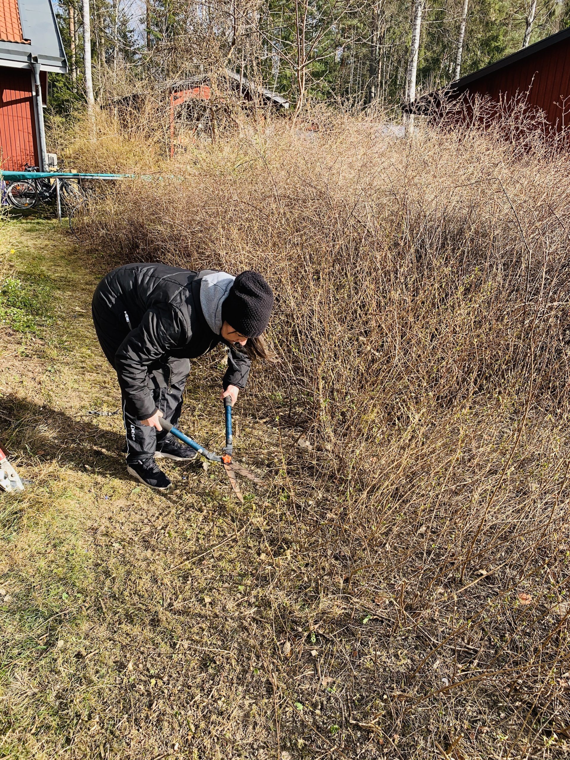 Milo hjälpte till att sopa och få bort ogräs och gammalt från förra sommaren. Så duktig kille! Blev lite jobbigare att borsta utan piassavakvast dock men det gick ändå. Måste komma ihåg att köpa en ny! Härligt att kunna engagera ungar i jobb hemma också.