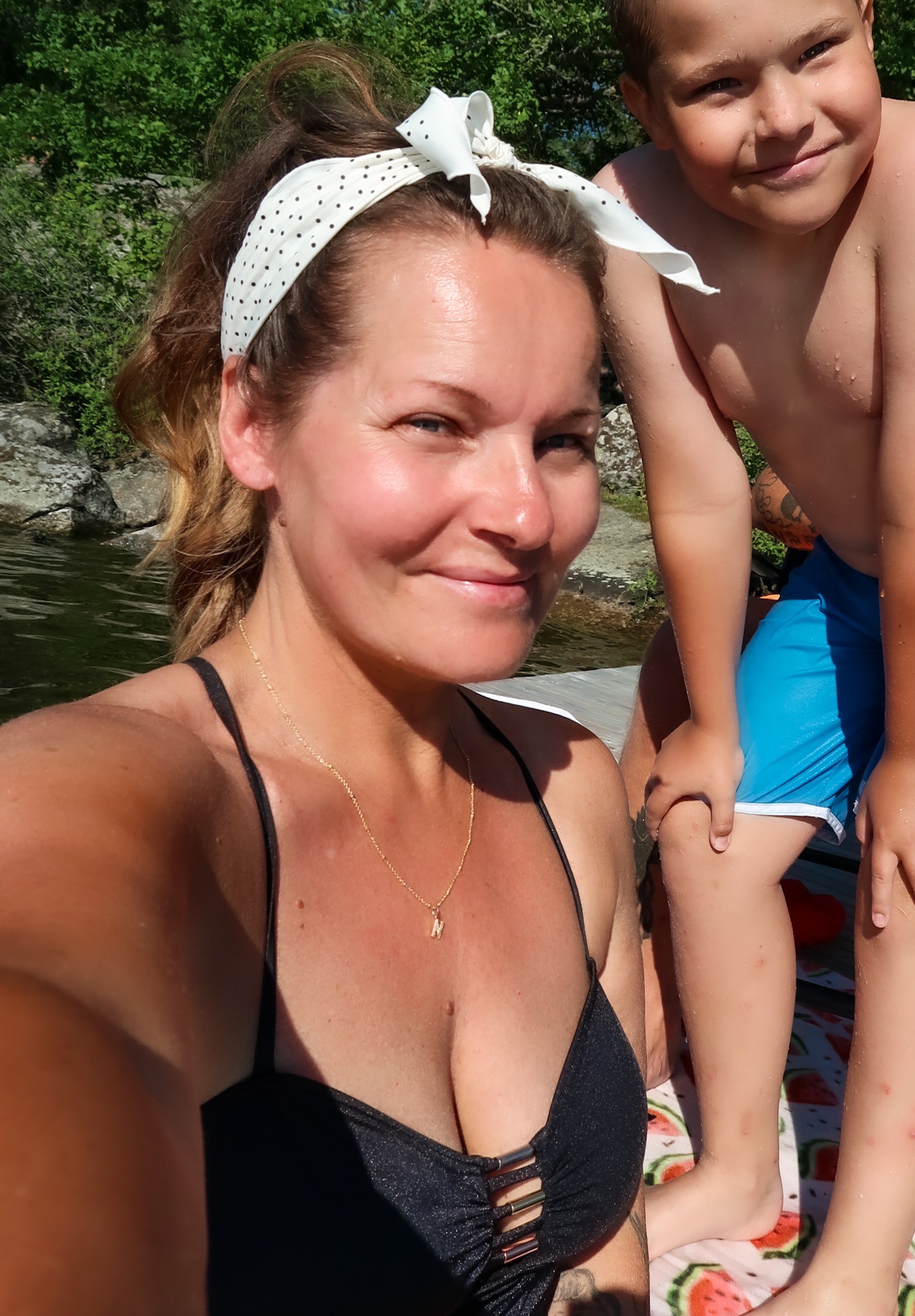 Jag är också en riktig badkruka skaru veta 😜 Men idag bestämde jag mig för att doppa mig helt 😎 Så jag gick jag bara ut i sjön utan att passera gå och på 1 2 3 så höll jag för näsan och doppade mig och kan du tänka dig att det faktiskt var riktigt skönt ändå 😜 Pröva 😜 Det lättaste är ju att hoppa i men det törs jag inte 😜
