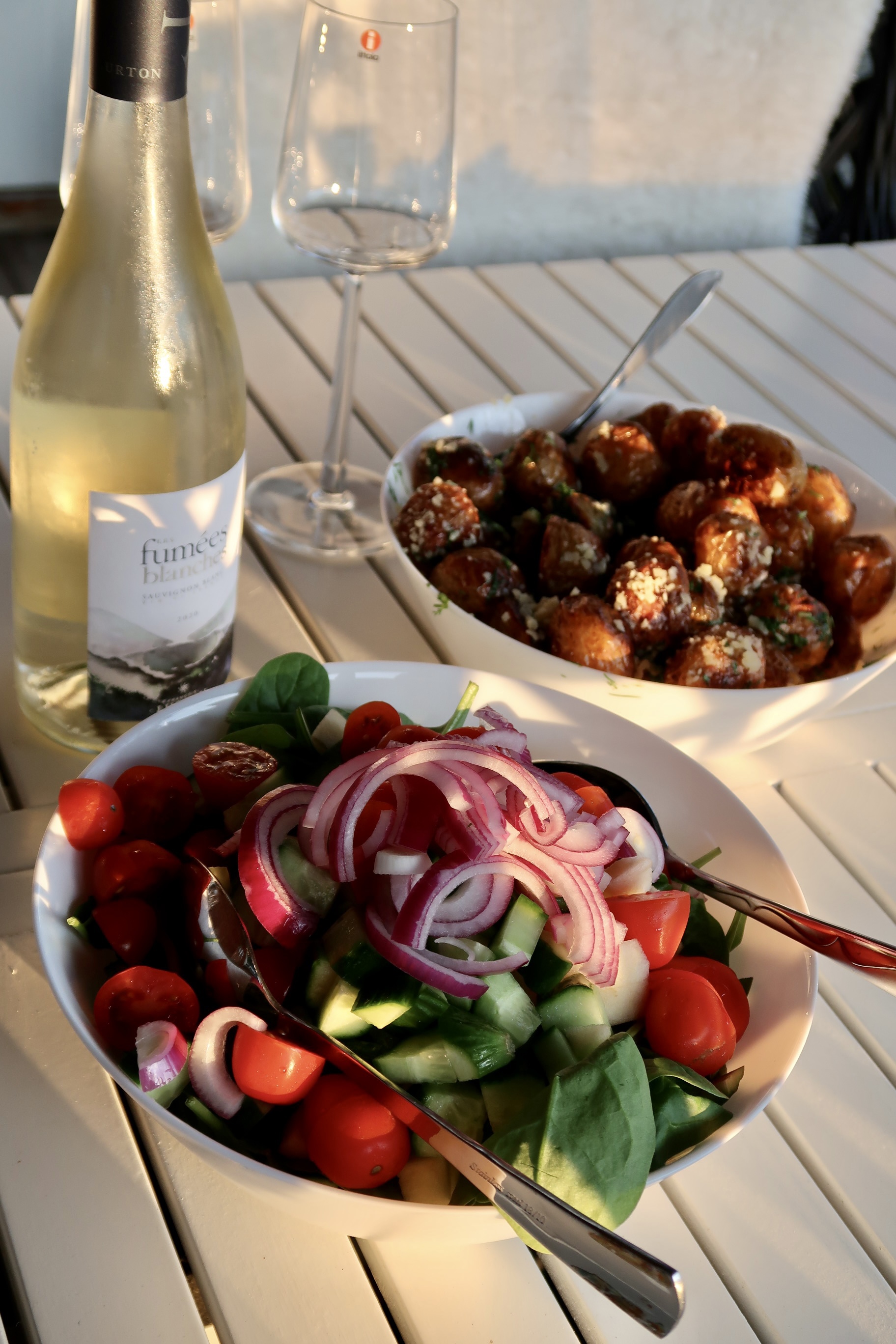 När vi kom hem så satte jag igång med maten, det blev jättegod grillad kyckling med min specialmarinad som alltid blir såååå himla god. Sen gjorde jag rostade färskpotatisar med en dillolja och västerbottenost. Oh my gooood, så galet gott. Recept kommer senare idag.