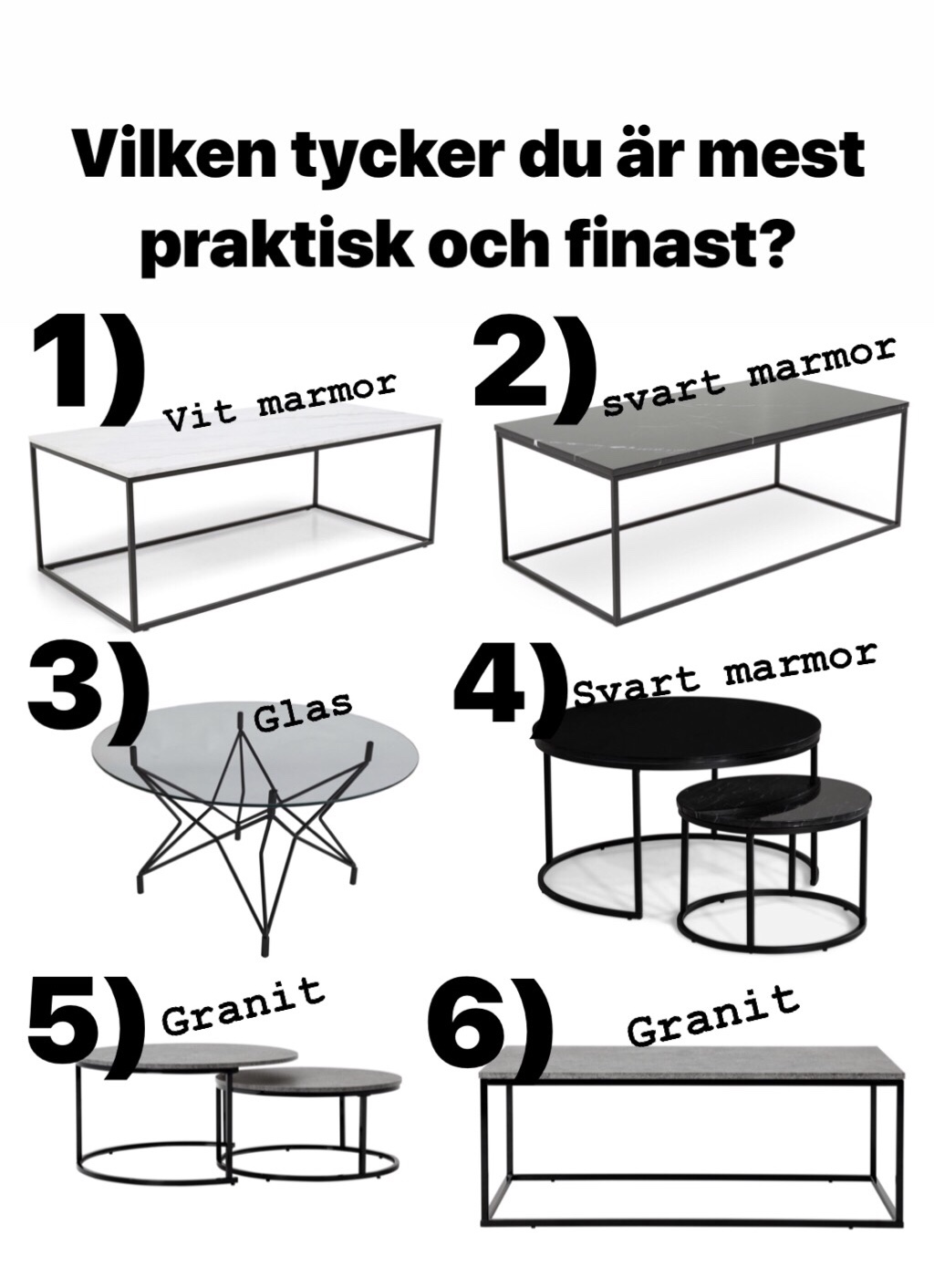 Jag slängde ut frågan på min Instagram också. Jag håller på att kika på nytt vardagsrumsbord. Vi behöver ha ett större och det vi har nu är för högt.