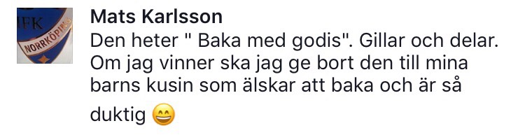 Dags att presentera vinnarna i tävlingen där du kunde vinna ett signerat ex av Jennys Matblogg:s bakbok: ”Baka med godis!”
