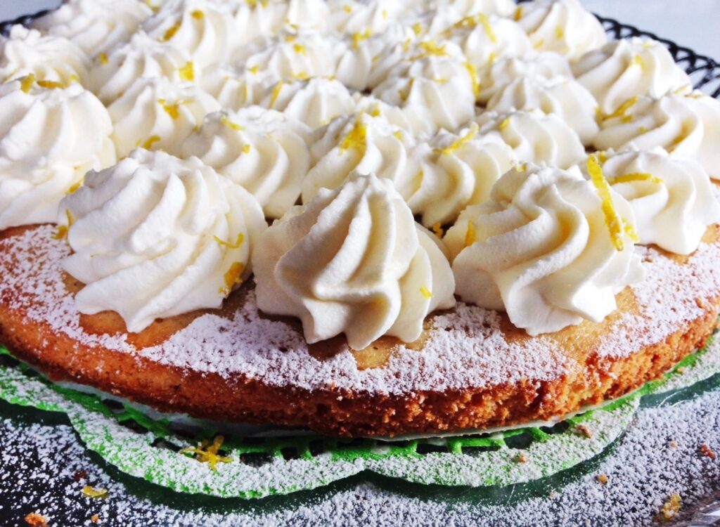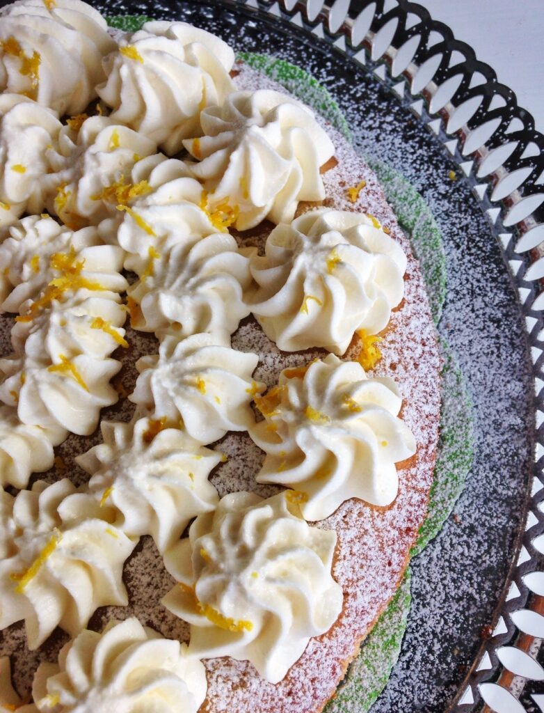7. Tag ut och låt svalna. Vispa grädden och riv citronen. Toppa med det och pudra sist över lite florsocker.