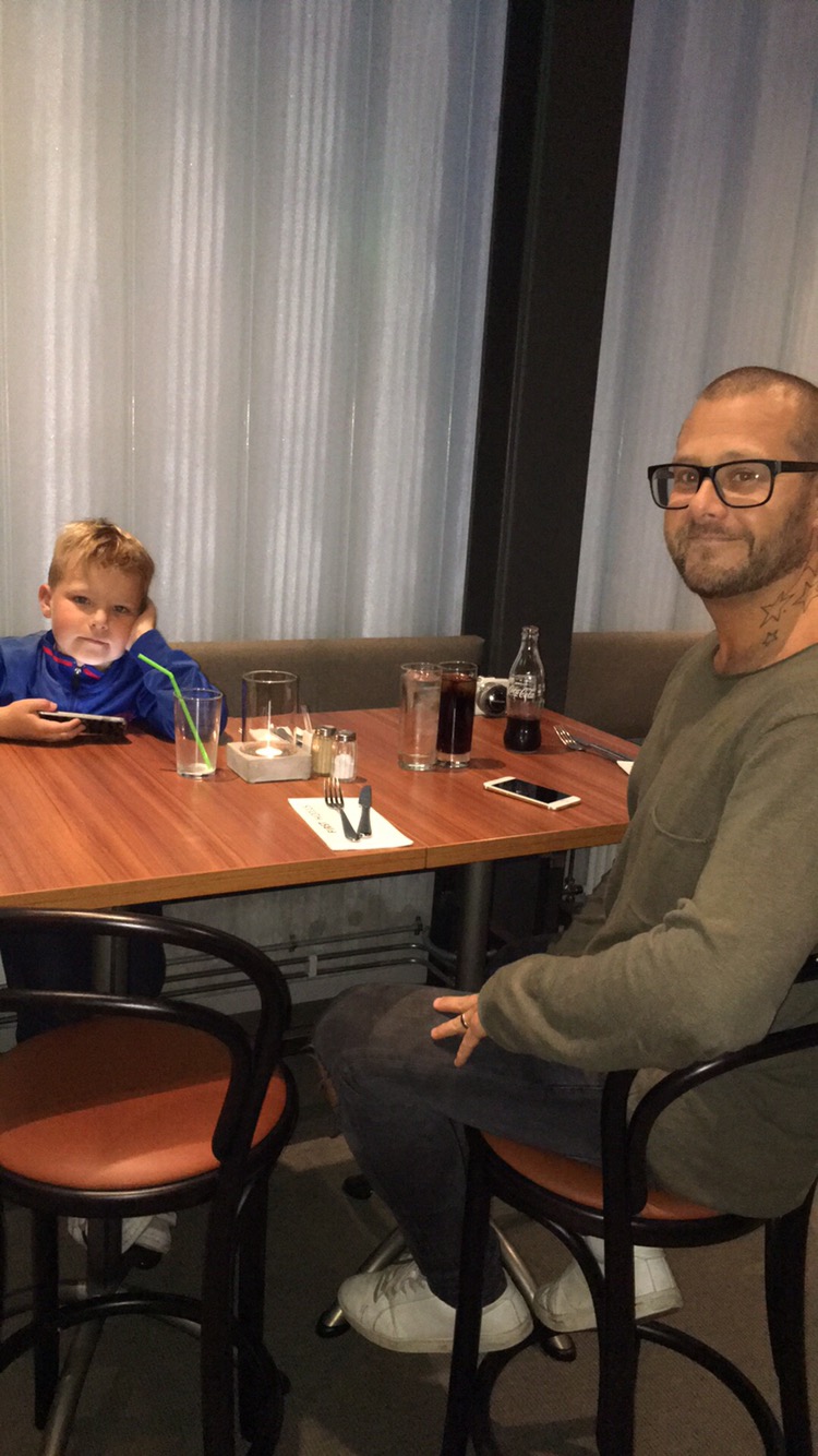 Röding till mig, pasta till Tony och körv till Milo. Tyvärr var maten hemskt smaklös. Min hollandaise smakade typ inget mer än smör. Rödingen var knappt saltad alls….nä, vi var faktiskt lite besvikna. Milo åt glatt så han gillade sin mat.