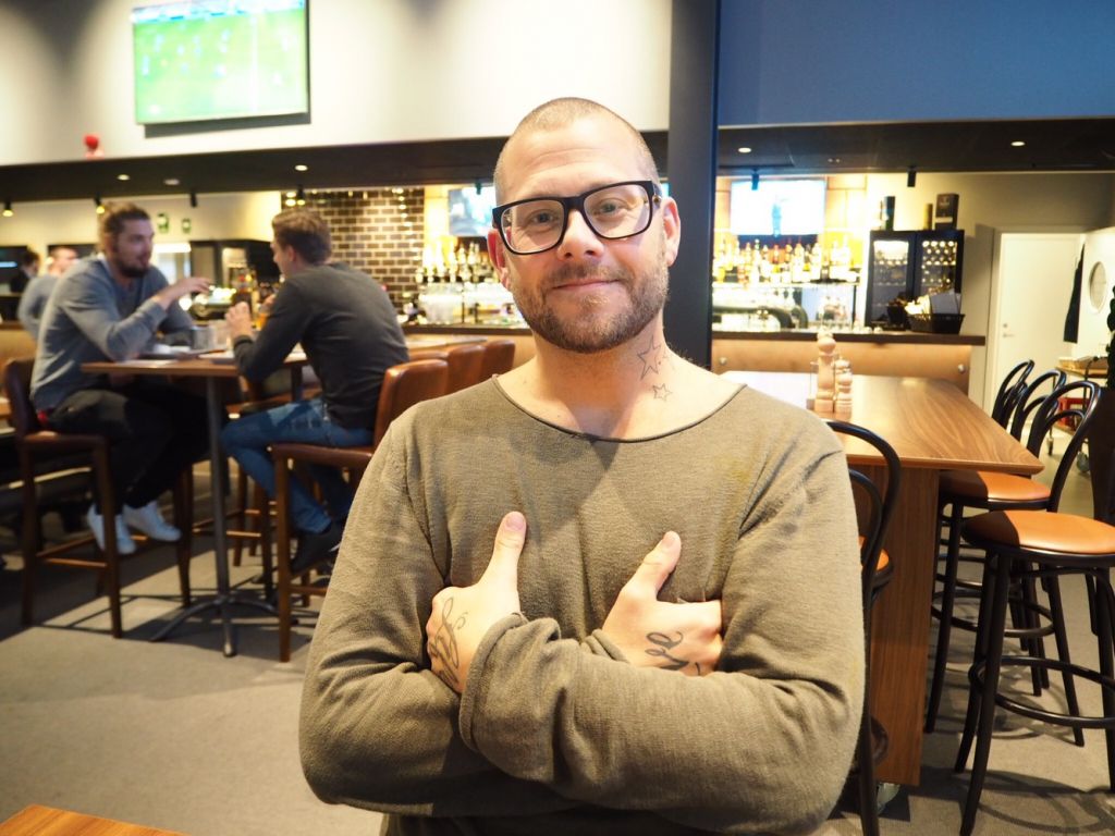 Frusen, trött och trött i ögonen just innan vi gick ned till hotellrestaurangen för att äta.